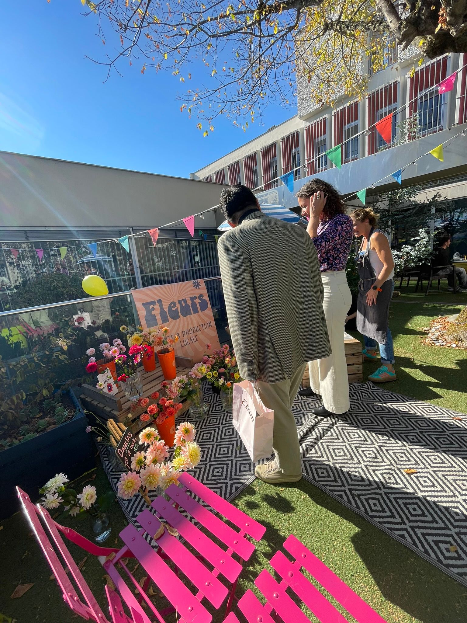 Et le clou du spectacle, la surprise qui a embelli l’événement : l’arrivée de la Pétalerie avec Bindi ! Organiser un marché aux fleurs éphémère au Patio ? Oui, c’était possible ! Le lieu a été transformé en un jardin d’Octobre, avec des fleurs magnifiques ajoutant une dimension po